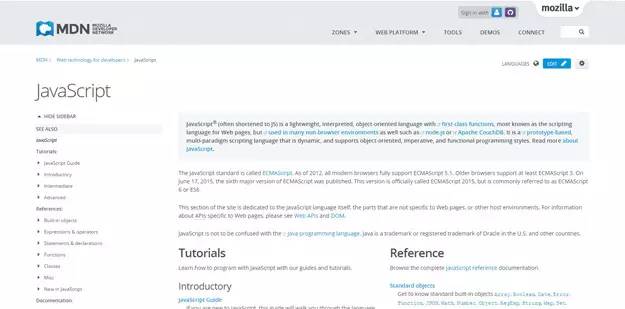 Mozilla Developer Network (MDN)是火狐浏览器所属的魔智公司所创建的网站。这个网站搜集整理了大量的JavaScript 学习指南和资源给初学者,在线教程也被划分成为初级,中级和高级三个不同级别。