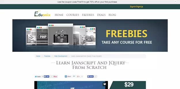 Eduonix 为你准备了一套有用而又易于理解的在线视频教程,帮你搞定JavaScript和jQuery 的学习。每个视频都由专业的人员创建,他们为你解释JavaScript的每一个概念和重要的细节。