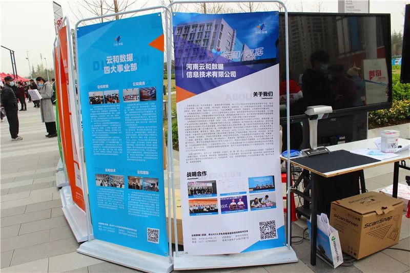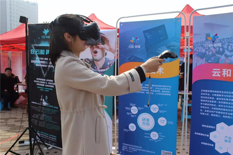 云和数据作为郑州软件人才培养“码农”计划、中原科技城数字豫才计划签约合作单位,教育部第一批产学合作协同育人项目单位,河南省电子商务示范企业,河南省第一批产教融合型入库培育企业,郑州市电子信息技术高技能人才公共实训基地,郑州市服务外包人才培训机构,第三届郑州市版权协会会员单位,第46届世界技能大赛(云计算方向)省、市两级集训基地,郑州高技能人才培养示范基地,郑州电子商务人才教育示范基地,也受邀参加本次招聘活动,并在现场进行了虚拟现实技术展示。