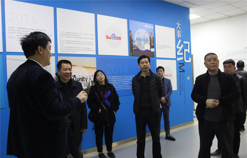 云和数据集团董事长郭总,云和数据集团副总经理伦总,云和数据集团副总经理李总,云和技术事业部副总经理李总,云和技术事业部副总经理牛总,集团互联网运营中心总监杨总,集团人资行政中心总监韩总陪同参观。