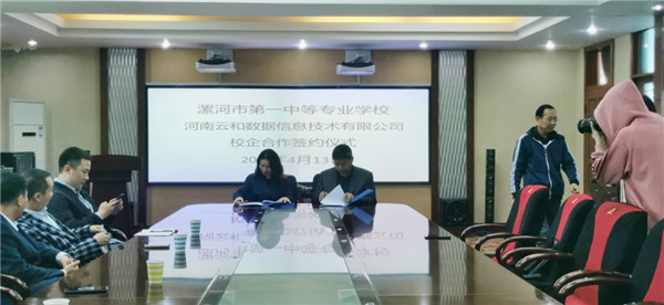 为响应国家关于产教融合、校企合作的政策,深化实践教育创新改革,2021年4月13日上午,云和数据与漯河市第一中专校企合作专业共建签约仪式在漯河市第一中办公楼三楼举行。