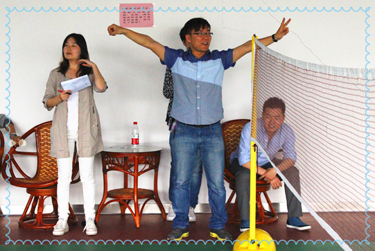 我们本次大赛虽说不敌奥运会及世界羽毛球大赛正规,但我们也是有严格规范滴,首先抽签来分组,上午预赛,下午决赛哦,赶紧跟你的对手相互认识一下吧!