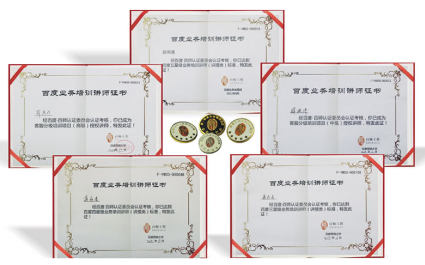 百度业务培训项目(高级)授权讲师,百度五星级业务培训讲师等