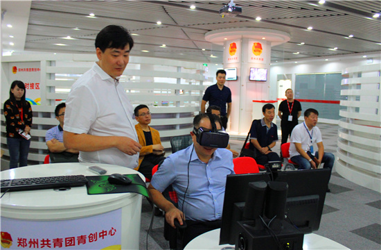 Unity3D游戏引擎是目前国际最主流的游戏引擎之一,目前unity3D虚拟现实技术已不仅局限于游戏领域,而是扩张到了房地产、景区、医疗、军事训练等各个领域。郭总在详细介绍了unity3D虚拟现实技术以后,新开普杨董亲自体验了一把。体验过程中各种兴奋溢于言表,并感叹其真实效果让其出了一身的汗。