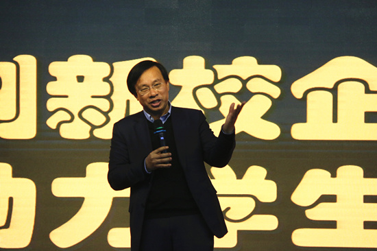 随后,周董开始了题为“从硬件技术革新看人才成长”的主题演讲。周董通过剖析自己的成长经历,分享了自己对人生和成长的看法。他认为人生有限,能够用来学习的时间更是有限,大学生在大学里一定要培养自己的兴趣,确定努力的目标,再去有选择地学习实现目标所需要的知识。